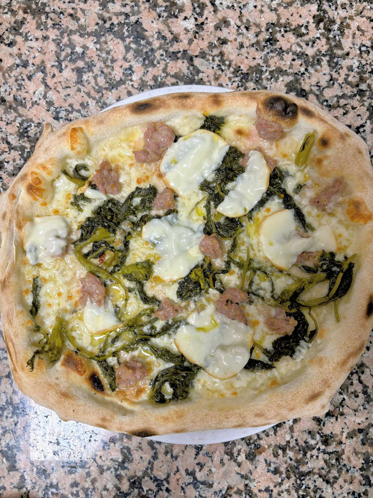 Fior di latte, provolone fumé, chair à saucisse, friarielli (fanes de navet)